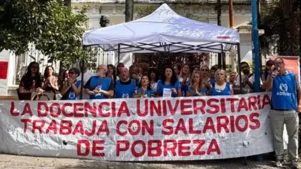 La secretaria general del gremio, Anahí Rodríguez, ya había advertido semanas atrás sobre el deterioro salarial. “Hoy los salarios son de pobreza. No alcanzamos a cubrir el costo de la canasta familiar”, afirmó. Según detalló, un docente auxiliar percibe alrededor de $200.000, mientras que un jefe de trabajos prácticos con dedicación exclusiva ronda el millón de pesos.